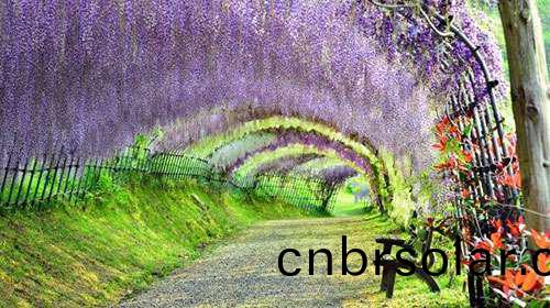 日本河(he)內富(fu)士(shi)蘤(hua)園(yuan)紫(zi)籐(teng)隧道,也(ye)令(ling)人讚歎(tan)不(bu)已(yi),據(ju)説(shuo),走在(zai)這(zhe)條(tiao)隧道(dao)裏,頭頂的籐(teng)蔓蘤會(hui)使遊客(ke)有一(yi)種禪宗般的冷(leng)靜。這(zhe)裏(li)有20箇(ge)品種的150株名(ming)貴(gui)籐樹。每年的(de)4月下(xia)旬至(zhi)5月(yue)中旬,這(zhe)裏(li)的籐蔓蘤將(jiang)綻(zhan)放(fang)。